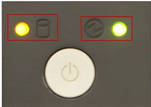Sur l’image ci-dessus, la diode lumineuse à droite indique que l’ordinateur est sous tension (donc qu’il est allumé). La diode de gauche montre que le disque dur est entrain de fonctionner.